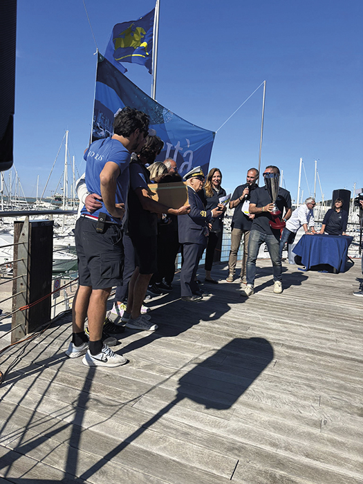 MORRIS vince l’8a edizione della Sailing Chef 2025 ad Ancona di Elena Casillo il 19 Mag 2025 Sailing Chef 2025 Come da tradizione, anche quest’anno la Marina Dorica di Ancona, di cui Alessandro Domogrossi ne è il direttore, ha accolto la Sailing Chef, l’originale competizione giunta alla sua ottava edizione, dove vela e cucina si fondono in un’esperienza unica. Inserita nel cartellone del Festival del Mare Tipicità in Blu, evento dedicato alla blue economy e alla biodiversità guidato dal presidente Angelo Serri e coadiuvato dall’immancabile braccio destro Alberto Monachesi, la Sailing Chef è ormai una tappa immancabile per appassionati di mare e di sapori autentici. Una leggera ma decisa brezza di scirocco ha accompagnato la flotta dei partecipanti, che, come ogni anno, si sono sfidati non solo in velocità, ma anche a suon di ricette preparate in condizioni tutt’altro che stabili: cucine basculanti, fornelli oscillanti e cambuse ridotte al minimo. È qui che entra in gioco la vera arte culinaria. L'equipaggio di MORRIS Hanno presentato la premiazione (da sinistra): Angelo Serri, presidente Tipicità in Blu, Elena Casillo, direttrice marketing e comunicazione di Nautica/Superyacht, Alessandro Domogrossi, direttore di Marina Dorica L'ammiraglio Vincenzo Vitale ha premiato l'equipaggio vincitore della combinata L'assessore di Ancona Angelo Eliantonio per premiare Ringhio I, arrivato secondo nella combinata Luca Facchini, chef e insegnante di Cucina del Panzini Senigallia, che ha coordinato la parte enogastronomica dell'evento La giuria MORRIS, un Grand Soleil 44 ha vinto la combinata della regata velica e quella culinaria ma tanti altri equipaggi sono distinti nelle varie categorie: Questo articolo ti è piaciuto? Condividilo!